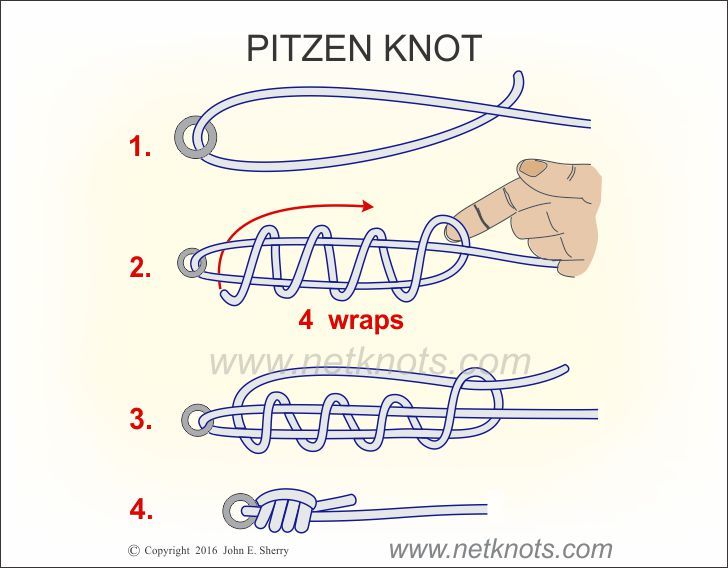 This is a slightly more complicated structure, but if you practice it many times it should not be a problem. If you plan to fish in large quantities, for extra power and endurance then the Pitzen knot, also known as Eugene Bend or 16-20 knots, is known to hold up to 95 percent of the break strength of the rope.