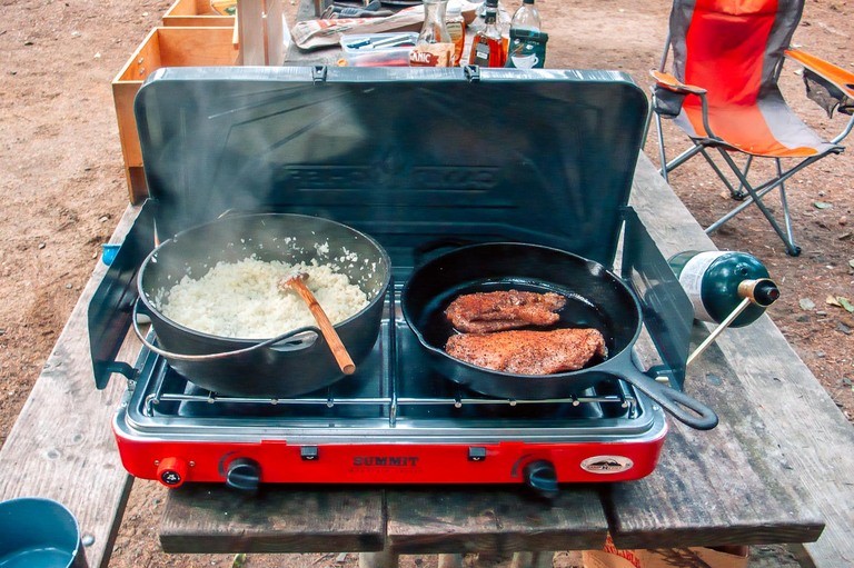 The technique should be made by a vintage two-burning propane camp stove. You will not be lucky enough to cook your meal and boil your brew in the morning at the very same time. Bring a few fuel tanks and a lightning container, and fire them at once, in order to know how this all works.