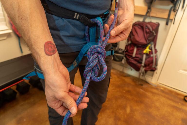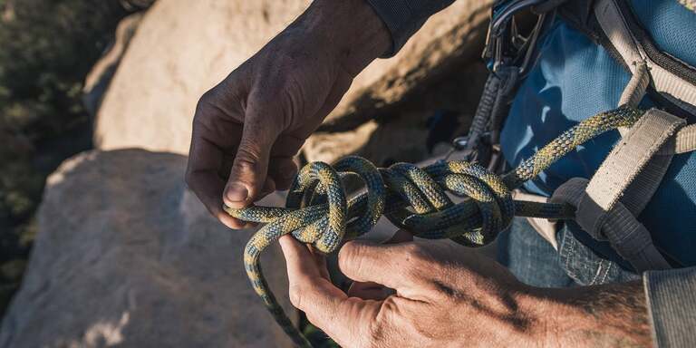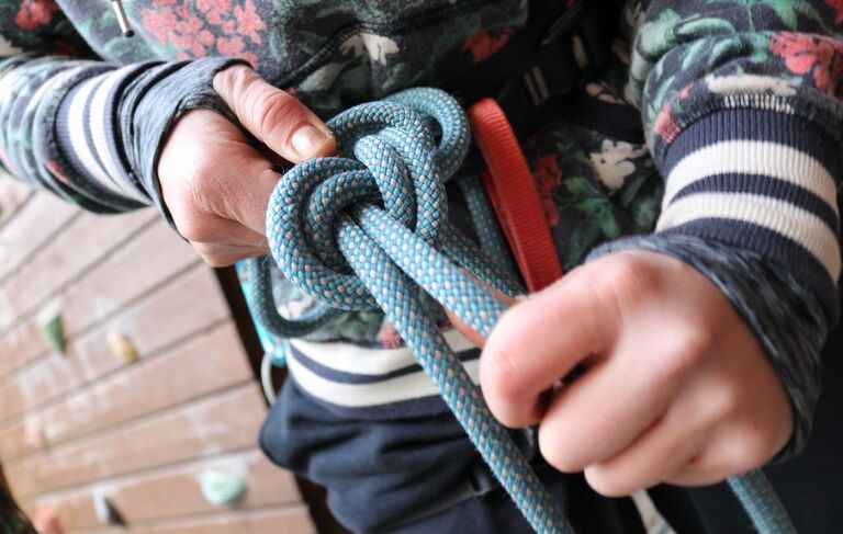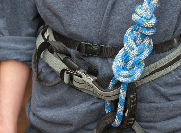 Binding involves knotting the belt on a load-bearing climbing rope. In order to tie in, you have to have a rope approximately 200 feet (61 m) long. And the distance from one end should be measured. The calculation must not be accurate and you can approximate it quickly with your shoulder.