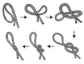 Only at point you were evaluating pinch the rope and then let the ends stay side by side. Then curl the ropes to shape the ring, which is also known as a bow. The shorter rope length is considered the work end. This is the portion that is required to finish the knot.