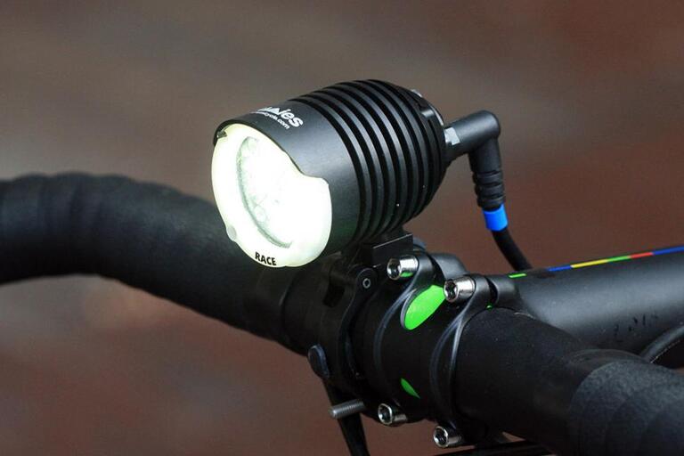 As above, the battery-powered front lights are designed to sit above the handlebars, but can create a lot of space when they are hung below. Exposure lights have recently developed a bracket that fixes to the center handlebar clamp and places proper lighting in front of and below the bars.