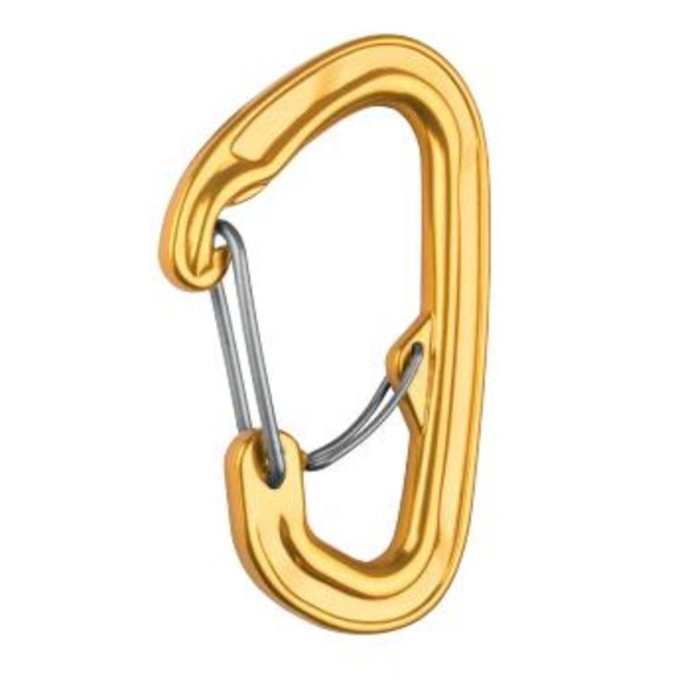 Normal carabiners have straight gates aka standard or bent gates. Simple curved gates often cut the wire into the pipe quickly and gently guide the wire in. Straight gates should be used to cut into the bolt as they prevent the carabiner from getting caught in the bolt.