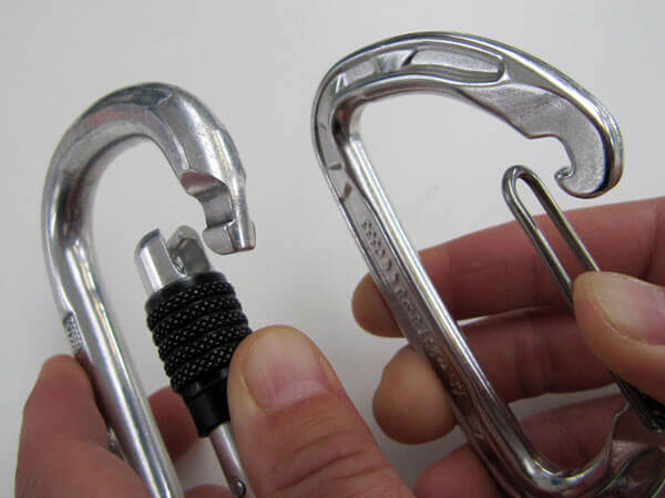 - Manual locking carabiners: there is a manual locking mechanism that you must actively close by hand.