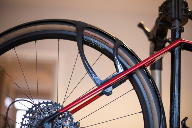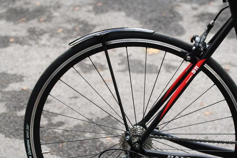 This feature mainly appears for those who ride road bikes. Usually these bikes have very little clearance between the wheels and the bike frame, wheels and brake calipers, so very few fenders will fit. Moreover, road bikes don't have threaded eyelets for screwing. However, there are now a number of fenders designed for them. With a wheel-tight fit or shorter lengths starting right after the clamping points, mainly attaching to the frame using specialized brackets, lanyards or rubber straps.
