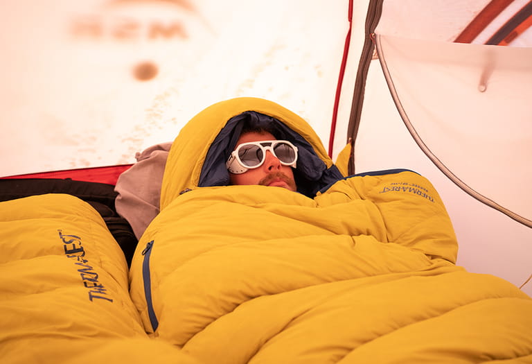 Sleeping in layers is recommended as the goal is to stay warm and comfortable in bed. But you shouldn't wear every piece of clothing you own, in fact it's best to wear as little as possible. It was an old-fashioned military tactic. If you go to bed in all your clothes, you won't have anything to wear to keep you warm when you wake up, unlock your insulated tent, and head out into the cold. The day is expected to start getting chilly. However, if you go to bed in minimal clothing, when you step into the cold, you can start getting ready, layering, and staying warm.