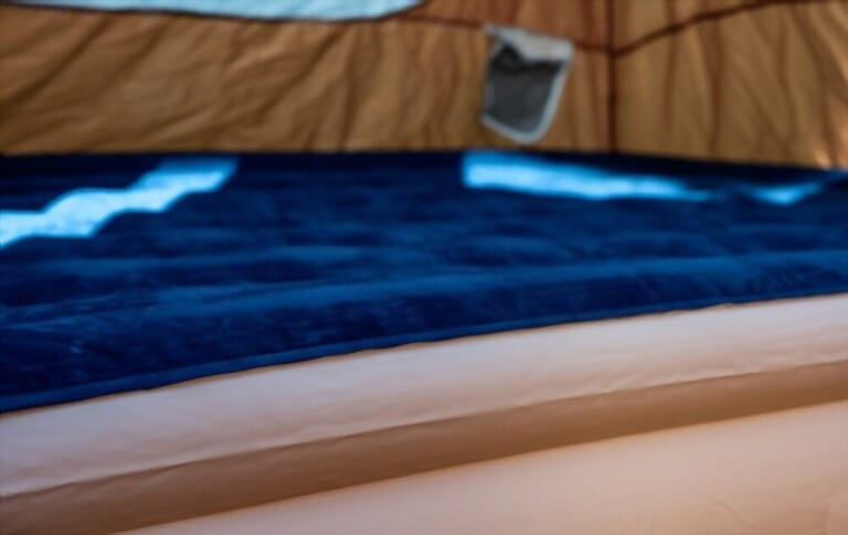 If you decide to use an air mattress, I suggest bringing your own pillows, regular bed sheets, and the coziest duvet and comforter from home to provide the most luxurious camping sleep conceivable.