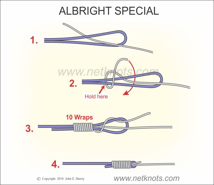 Pros : The Albright Knot is suitable if a fish pulls sufficient distance to meet its backing to pass easily via its guide. Some fishermen are coating the knot with a cement on a rubber basis to make it stronger and safer.