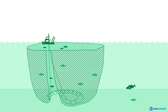 Surrounding fishing nets make use of their habit to catch floating fish. They work by enclosing fish flocks surrounded by net walls that prevent fish from escaping to the outside.