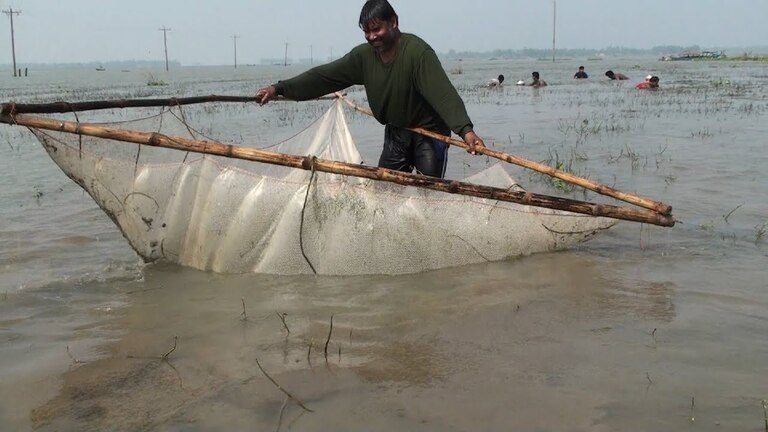 To set up the gills they had to use small boats. And the subject line is tied to a tree or fixed on the bank above the high water mark. Depending on the tide and the species is targeted to carry the net in the right direction of the water. The net gills are mostly set at a water level of at least 2 m, coastal stingrays are often anchored on the coast and you can see them exposed at low tide, only catching fish at high tide.