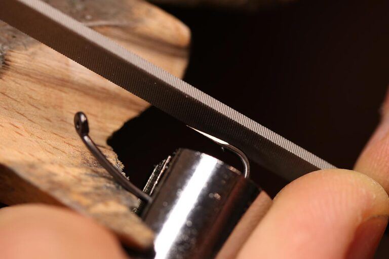 Modern hooks have a smooth coating that reduces corrosion and prevents them from penetrating faster. Hook sharpening easily removes that coating, making the tips more susceptible to rust. To prevent this, simply color the freshly sharpened tip with a permanent marker and let dry. This method makes the hook more durable.